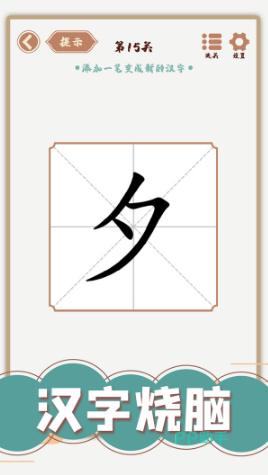 游戏画面采用简洁明亮的画风,这种画面风格并非随意为之,而是精心设计的结果。简洁的画面不会让玩家在游戏过程中产生视觉疲劳,明亮的色调则能让玩家保持轻松愉悦的心情,更有助于玩家集中专注力去探索游戏的奥秘。游戏的核心玩法极具挑战性,非常考验玩家的想象力和图形思维能力。玩家需要在给定的汉字上添加一笔,从而使其变成一个新字。