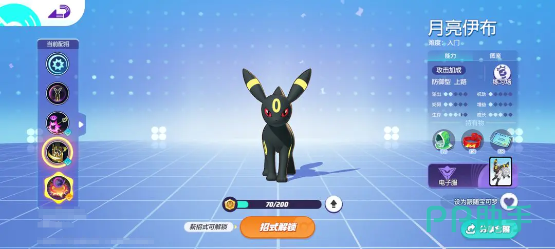 宝可梦大集结月亮伊布怎么玩?月亮伊布作为近战防御宝可梦,比很多该类型的宝可梦都更加的抗揍,坦度非常充足,擅长防守保护C位,所以很多朋友都向练习这个宝可梦,但是不知道它的配招怎么选择比较好,接下来就给小伙伴们对配招分析一下,感兴趣的朋友做个配招的参考吧。