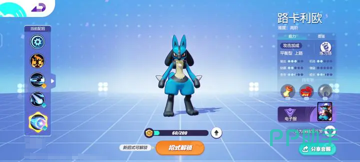宝可梦大集结路卡利欧怎么玩?它是一个近距离的平衡型宝可梦,操作的难度是高阶,虽然操作难度比较高,但是仍然有很多小伙伴想要尝试,但是毕竟角色配招选择多样化,很多小伙伴不知道怎么玩,下文主要给小伙伴们推荐一下它的配招攻略,不知道如何去操作的小伙伴可以参考一下。