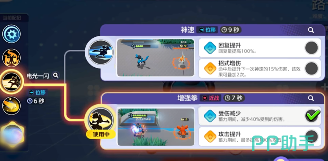 最后是它的大招技能,使用后路卡利欧全神贯注的使用博波导之力攻击敌人,招式命中敌方会对其造成高额攻击,后续强化还能带来减速和伤害提升的效果,非常强势。