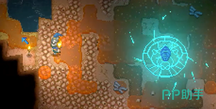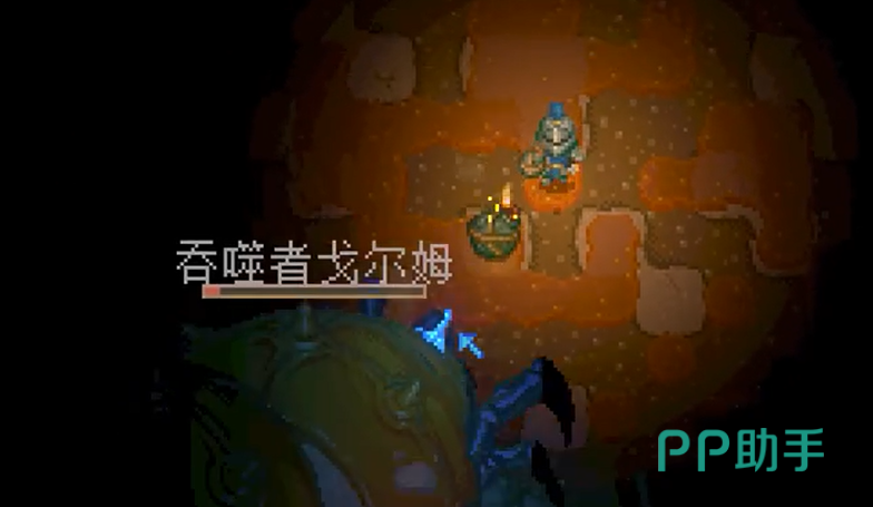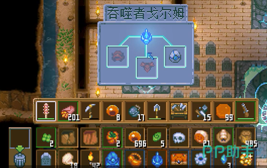 然而,获得探测器并不是一件简单的事。首先,你得打败游戏中的初始挑战——大史莱姆。这个体积庞大的黏液生物会掉落一个重要的道具:蓝色水晶。把水晶放入大史莱姆雕像内激活后,在工作台上便可制造出吞噬者探测器。材料收集起来并不困难,所以建议在砍下大史莱姆之后立刻行动。