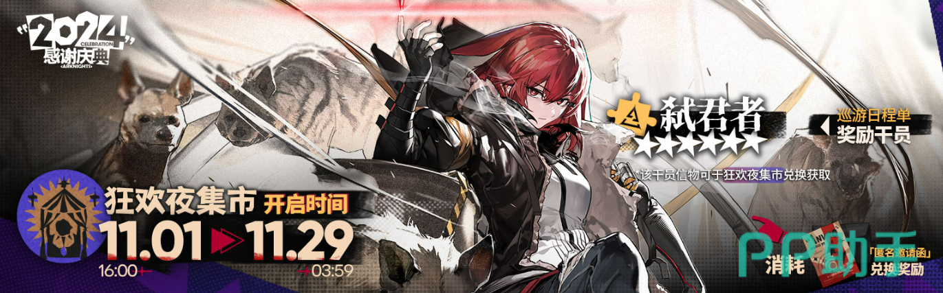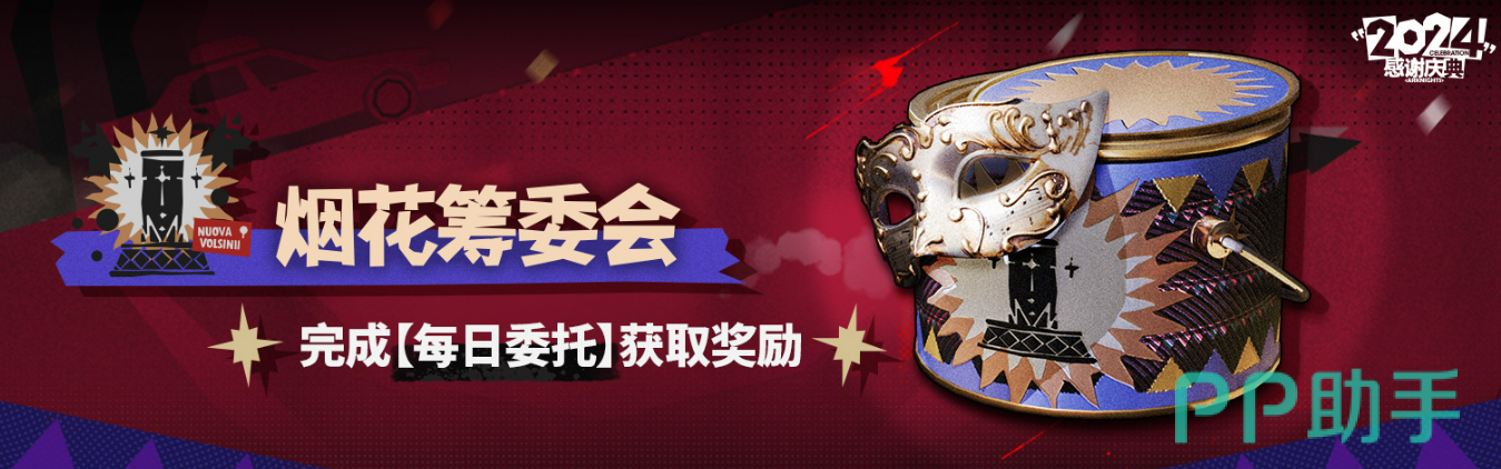 在「感谢庆典」期间,玩家们还可以在【烟花筹委会】完成每日委托,领取道具奖励,包括随机养成素材的【狂欢烟花桶】。完成【巡游日程单】中的任务,可以获得干员【弑君者】以及其他实用奖励,如模组养成材料和匿名邀请函。