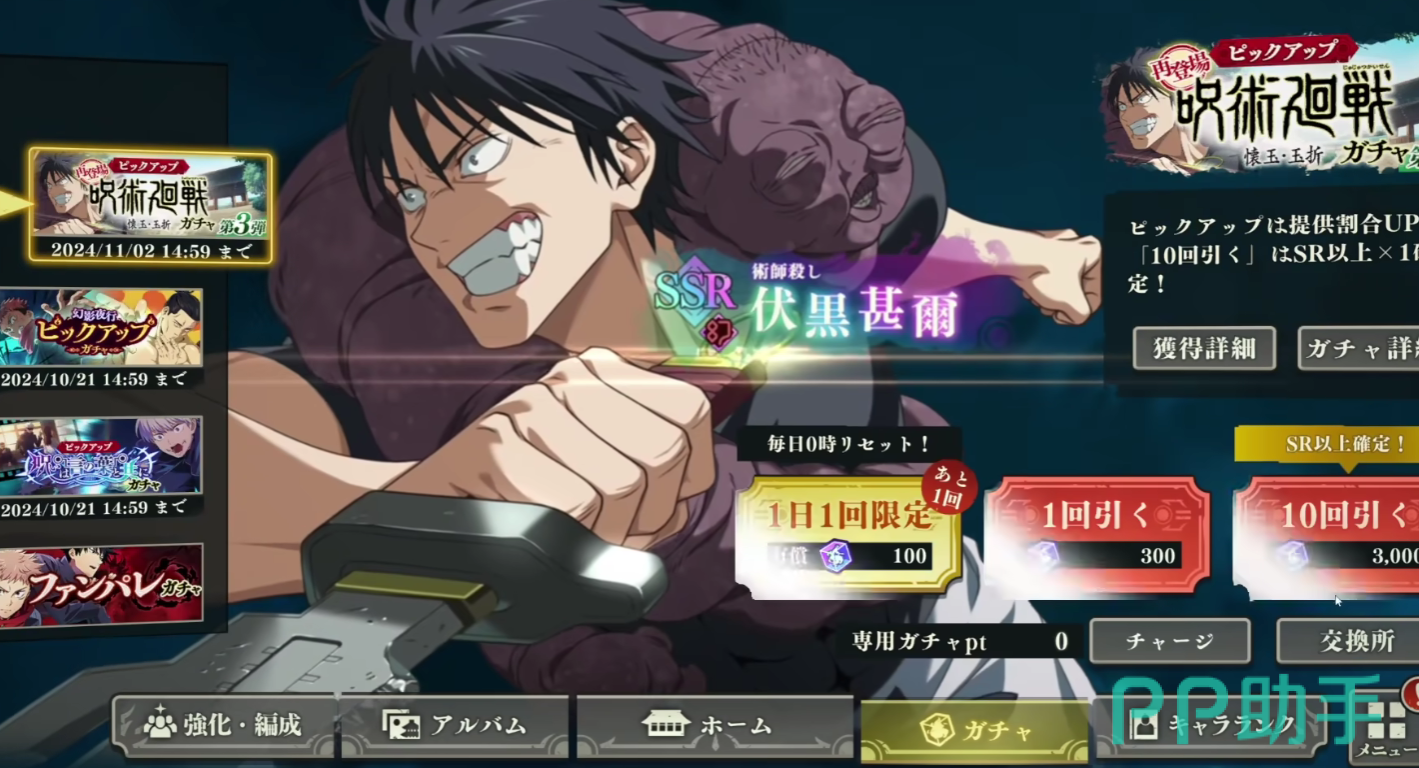 游戏当中也有pve角色以及pvp角色的分类, 在进入到pvp环节之中,玩家可以使用伏黑甚尔作为自己的主要输出角色。