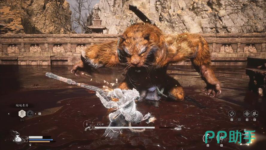 与虎先锋的战斗是一场节奏与耐心的较量。虎先锋的攻击虽然凶猛,但并非无懈可击。只要时刻保持冷静,躲开他的关键攻击,利用他出招后的停顿时机,就能慢慢削弱他的血量。整个战斗过程中,最重要的就是不要贪刀,见好就收,否则很容易被他的反击打个措手不及。尤其是在他发动连招时,保持距离和节奏是关键,别想着一口气把他打倒,慢慢磨才是王道。