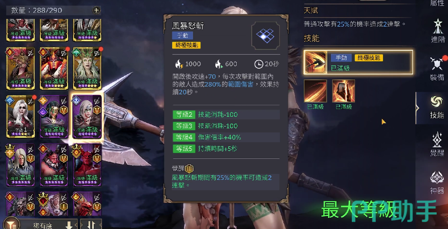 在潮汐守望者这款游戏当中,攻击倍率最高的英雄是复仇女王,她拥有极高的群攻效率,并且能够优先攻击敌方防御能力最低的单位,在攻击的同时,复仇女王还附有隐形的技能,在每一次攻击伤害数值判定之后,复仇女王还能够对自己下一次的普通攻击叠加一次伤害被动,该伤害的倍率为5%,当被动技能的等级提升到五级时,该技能会造成的伤害即可提升到20%。