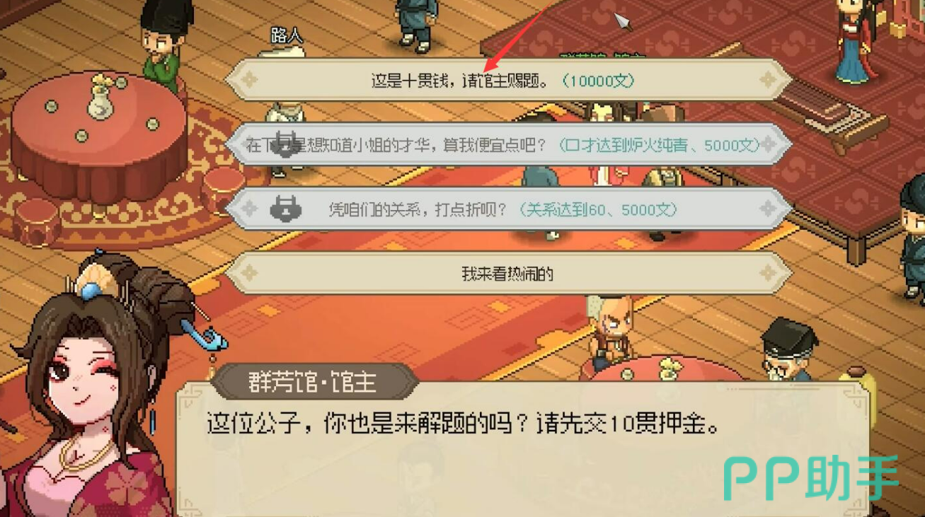 当你踏入群芳馆时,第一步就是与馆主交谈,并支付10贯钱以开启这场神秘的解谜任务。不过需要注意的是,这次解谜需要一定的音律技能,如果没有达到要求,可能会影响后续的进展。整个任务由四个谜题组成,每个谜题都隐藏在霖安城的不同角落。