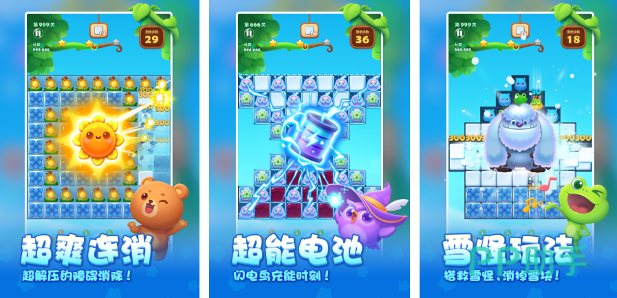 该手游凭借炫目的视觉效果与简洁的三消玩法,赢得了众多玩家的青睐,连续消除方块更能激活独特技能,增添游戏乐趣。尽管规则简明扼要,却蕴含着丰富的策略性与趣味性,令玩家欲罢不能。玩家只需将同色方块相连,即可解锁多样特效与奖励,让分数飙升。无论你是寻求轻松解压,还是渴望挑战自我,这款游戏都能完美契合你的需求,带你领略不一样的消除魅力。