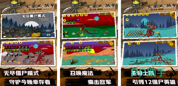 火柴人战争遗产系列是很多喜爱策略战斗玩法玩家们必选的一个系列,而它的第三部不仅沿袭了前两部当中的精彩打法,而且在游戏的过程当中玩家还可以领略多种自然风光,从平原到西方海岸,再到无人荒漠,视觉享受感拉满游戏采用关卡模式进行设计,大战一触即发,每一次对决过程热情感满满,无尽试炼模式,让玩家一战到底。