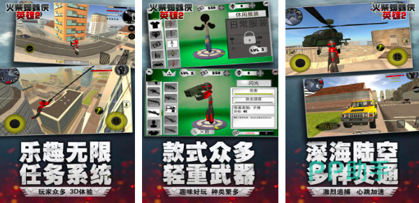 火柴人蜘蛛侠英雄2是一款非常经典的火柴人风格的动作游戏,而且游戏整体环境设定加入了大量的3D技术,玩家可以操控蜘蛛侠,火柴人。和城市里的恶势力进行疯狂决斗,游戏里设计了强大的武器库系统和升级系统,玩家可以利用对决过程中爆出的资源来对武器装备进行快速的等级提升,通过关卡模式让玩家体验层层递进的欢乐,而且游戏当中的武器装备从轻武器到重武器款式众多,满足不同玩家们的需要。