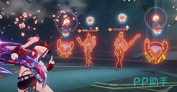 她的群体攻击技能能够对众多敌人施加虚数伤害,这也使她在多人战斗中如鱼得水。乱破从城市高楼纵身跃下,仿佛是来自都市丛林的猛兽。此终结技赋予她3点「彩墨」和一次额外行动机会。「彩墨」的存在显著提升了她的弱点击破效率以及击破特攻能力。