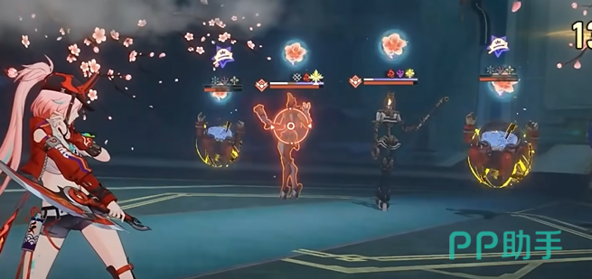 乱破在未持有「彩墨」时,依靠手里剑对敌人进行精准打击。然而,更引人注目的是,当她拥有「彩墨」时,她的攻击将大幅度增强——在回合开始时耗费「彩墨」,以第一人称视角投掷飞镖。此强化普攻不仅能分段对目标及其周围敌人造成伤害,还能无视敌人的弱点削韧,第三段更是对全体敌人造成毁灭性打击。