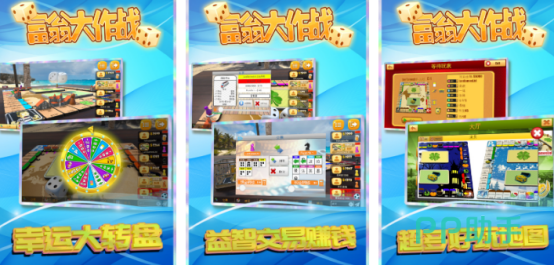 富翁大作战这款游戏能帮助玩家实现富豪梦想,此游戏可以支持2~6人共同体验,在这里玩家将会成为一名富豪,并且通过建造房屋以及拍卖资产的方式拥有更多财富。而且玩家还有一个很重要的任务,就是需要想尽办法垄断土地让对方破产,这样才能让自己成为真正的百万富豪。