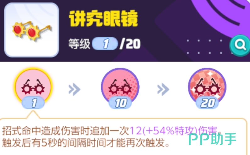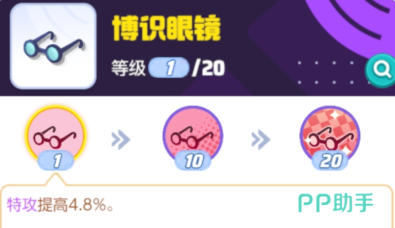 穿透汤匙,简称勺子,可以加特攻、加减CD,效果是提供9%~15%的特防穿透,对面有高坦度的防御型宝可梦时要出这个。然后是“博识眼镜”,同样是加特攻加冷却缩减,可以提供最多8%的额外特攻加成,对于靠特攻打输出的宝可梦来说,这个堪称“责任”装,想打输出carry比赛,这个是必出的。