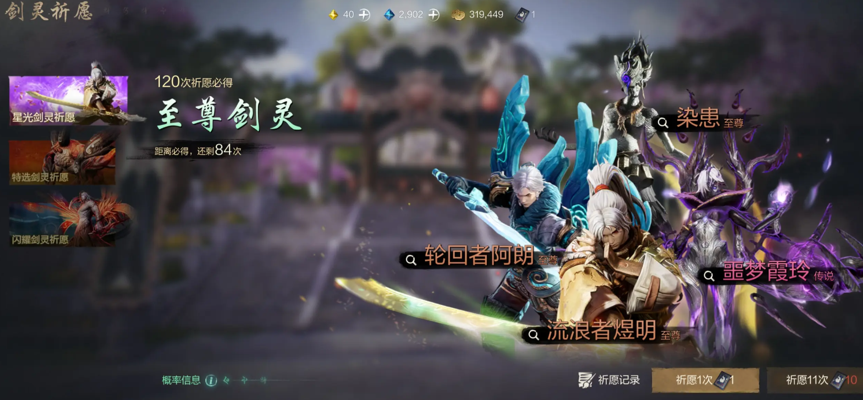 2、特选剑灵祈愿