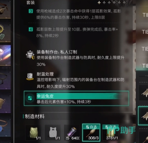 待确定捕获的兔子含有【幸运子嗣】词条后可以先利用它来进行繁殖后,待繁殖后确定后代还有【幸运子嗣】词条后在收获它的皮毛,这样玩家就能拥有足够多的幸运兔皮。幸运兔皮这个道具能增加玩家元素异常伤害10%,算得上是不错的武器装配道具。