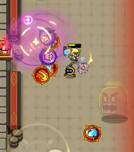 接下来是唐刀,它是一柄以天外陨铁锻造的绝世名刀,曾经在宫爆村庄的武器圣殿中熠熠生辉。虽然在死神军团的入侵下,这把刀与圣殿一同被掩埋,但最终还是被宫爆老奶奶重新带回人间。唐刀象征着顽强的精神和正义的化身,其每次攻击都有机会触发二连击,且在生命值低于20%时,能够回复生命点数。在与妖魔鬼怪的对峙中,这把武器凭借高额的单体输出以及旋风斩等技能的AOE伤害,为老奶奶赢得了无数胜利。不过,它也存在攻击后摇较大和攻击距离短的缺点,需要让使用者精湛的走位技巧来弥补不足。