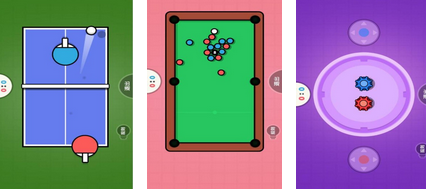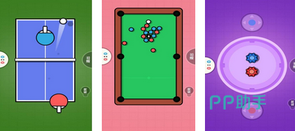 在联机的操作下,玩家可玩耍多式多样的小游戏。一般来说,页面会分为上下两个部分,玩家使用不同的颜色进行乒乓球的PK,还有红蓝两种经典颜色的台球试炼场。在其他的一些小玩法上,玩家可利用陀螺以及卡牌等多种元素进行对战。除了好友联机外,玩家也可以选择陌生好友进行系统匹配。