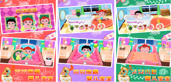 贝贝照顾婴儿宝宝这款游戏凭借着卡通的画面以及简单的操作手法,吸引了更多玩家。就算是小孩子都可以轻松操作,玩家在游戏中要为婴儿洗澡穿衣吃饭等等,游戏将真实的日常生活呈现的淋漓尽致,通过虚拟世界的模拟游戏,能让玩家在照顾宝宝时不那么手忙脚乱。