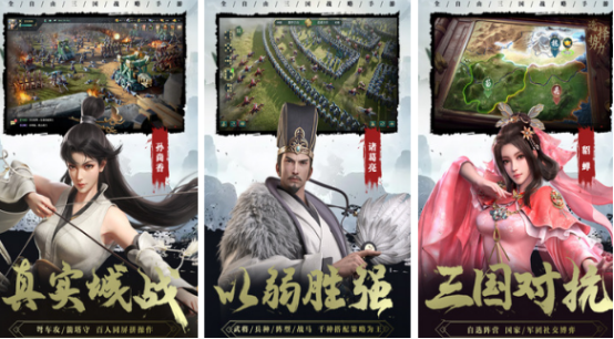 三国作为我国真实存在的历史,以三国为背景的策略战争游戏,受到很多玩家的追捧,游戏为了能够给玩家带来更多的新鲜感,会不定期推出各种相应的赛季以及全面的活动。这款以slg为主的三国策略游戏采用写实画风,有关于三国时期的各种地形以及具体特色高度还原,玩家可以收割资源,创建城池,还能选择自己喜欢的英雄武将对战。
