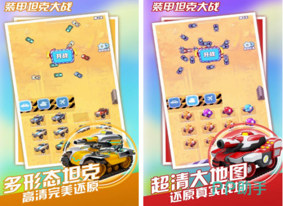 大部分的玩家在看到装甲坦克大战,这一款比较休闲又益智,充满着卡通风格的坦克游戏以后,大家也会特别的感兴趣。不仅可以驾驶着坦克展开战斗,也是一款能够合成装甲车的,通过不断的合成以后,可以使坦克具有多种形态,有高清完美的画面内容,通过逐渐强大队伍的方式,每一个玩家都可以展开热血的战斗场面。