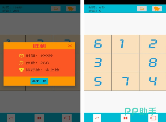这款就是比较好玩的华容道手游,需要玩家通过用最少的步数以及较短的时间将棋盘上的数字通过正确的排列顺序完成,就能顺利通关,也是玩法非常简单,设计比较简单的游戏。在几个格子当中会显示相应的数字,由于几个数字都是打乱顺序的,所以玩家要利用自己的智慧使每一个顺利有正确的排列顺序,这样就能取得胜利。