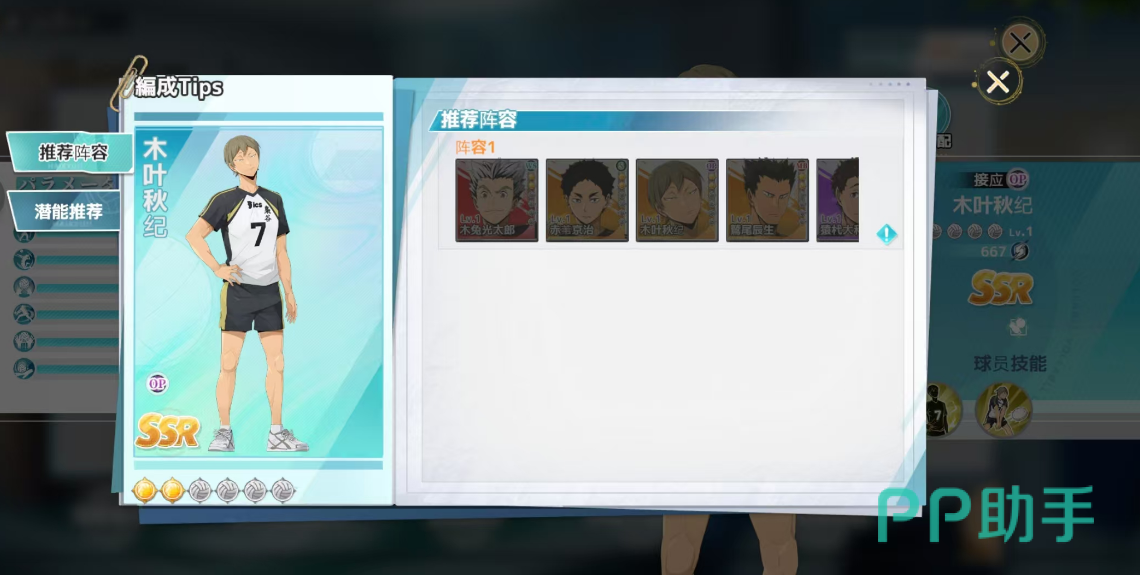 木叶秋纪是排球少年枭谷阵营里面一个相对来说比较全能的选手,虽然在动漫中并没有给观众留下很深刻的对决印象,但是在游戏内也被设定成了ssr品质。关于排球少年手游木叶秋纪怎么样很多小伙伴比较好奇,在木兔光太郎的领导下枭谷阵营具体属于什么样的比赛特性,感兴趣的小伙伴一起来跟着了解一下吧。