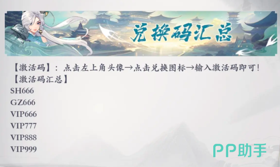 目前可用的礼包码包含:SH666、GZ666、VIP666、VIP777、VIP888、VIP999。这几个兑换码都是长期可用的,大家只需在进入游戏后点击左上角的头像,然后点兑换图标,输入兑换码就可以了。