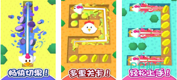 小鸡切水果这款3D场景的水果切割游戏玩法与其他切水果游戏有所不同,游戏的主角换成了呆萌可爱的小鸡仔,快速的切割机制和轻松上手的操作全都为本作加分不少,玩家只要控制3D小鸡的前进方向就行,小鸡会用自己锋利的喙快速切割一整排的水果,这款切水果游戏的画面轻松明亮而且氛围休闲能让玩家获得好心情。