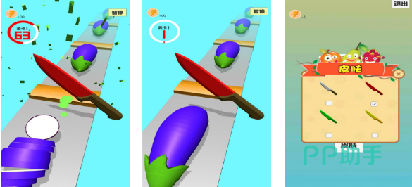 本作也是款具备三维立体背景的水果切割单机类手游,切割水果的玩法足以锻炼玩家的反应力并具有休闲益智的内容,玩家可以自由选择锋利的刀具对各种各样的水果进行切割,除了切水果模式还加入了榨汁、水果拼盘等超多休闲模式,三维的背景和3D水果塑造更让游戏的观赏性大大提升。
