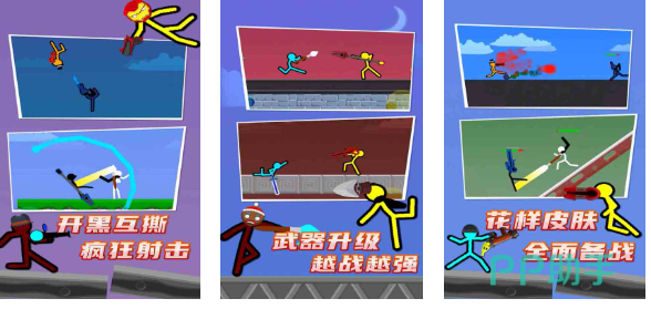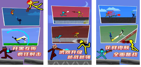 火柴人这个系列的游戏内存都不大而且有许多值得下载的联机作品,火柴人对决就是相当受欢迎的双人联机PK竞技动作游戏,快速的开黑匹配机制搭配众多武器的加持让玩家乐在其中,还有花样繁多的角色时装以及武器装扮可以解锁哟,各种场景的加持让这款火柴人主题的游戏具备无与伦比的新鲜感,热爱双人联机对打小游戏的朋友试试火柴人对决吧。