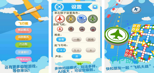 飞行棋操作较为简单,玩家点击即可完成投掷以及飞行棋前进的步数,当到达同一格数时还会击落对方的棋子。除了经典的拖动玩法外,玩家还可以选择消除以及六边形等不同的板块进行体验,更有见缝插针这种特色玩法让玩家领略飞行棋的魅力。在设置方面,玩家可自由选择人机或者好友作为自己的对手,并且更改自己飞机的形状,还能够提前控制起飞的号码从而拥有先手优势。