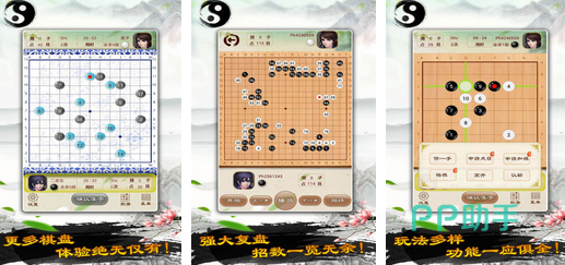 棋盘的选择较为多样,玩家可在水墨画棋盘中进行围棋对弈。每一位棋手都有自己的等级,并且棋盘上还会显示每一局所用棋子的个数供玩家进行参考。在与好友的正式围棋PK页面上,玩家可点击右下角的形式板块获得对于该局的友情判断,然后及时的采取下一步策略,也可以直接点击菜单获得更多的设置需求。在复盘方面,玩家可选择回看播放从而汲取该局的经验。