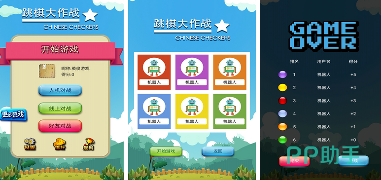 跳棋的颜色一共有6种,玩家选择自己喜欢颜色的跳棋成为一方即可进行挑战。人机对战适合玩家进行一人跳棋玩法。在联机玩法中,玩家可以与好友成为跳棋的对手进行PK,六个位置中空出来的位置就可以选择机器人自动进行。规则比其他棋类游戏更简单,新手可以很快地与好友熟悉后进行玩耍。