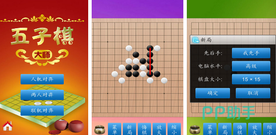 画风以原木为主,玩家每开一局,可以自由设定先后手以及棋盘的大小。棋盘的大小一共有4种,玩家可根据自己的视觉要求进行设置。在后续的设置当中,不仅有多功能的菜单供玩家点击,还有汇集和放大和缩小等多个功能给玩家带来方便。五子棋的人机对弈玩法难度较小,不少玩家可以挑战难度较高的两人对弈以及联机对弈,这也是一个与好友进行交流的机会。