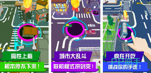 黑洞来了也是最近一款火爆度非常不错的吞噬主题小游戏,在游戏中不仅拥有极强的休闲娱乐感,并且他还加入了有趣的益智玩法,玩家可通过城市大乱斗的联机模式,开启有趣的PK玩法,魔性的吞噬过程让玩家们根本停不下来,疯狂吃掉各种各样的街边物品。整款游戏操作模式更加简单,只需要指尖控制黑洞就可以快速吞噬掉周围的一切,不过非常考验玩家们的手速哦。