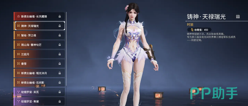 接着是“铸神·天禄瑞光”,只需1800金砖即可获得。这套服装以紫色透亮的设计受到众多玩家的热爱。穿上它,仿佛变成了来自天上的仙女。此外,还有“观山海·春神句芒”和“兰庭月”两种风格各异的时装,同样价位,但各自展现了自然与人文的不同魅力。