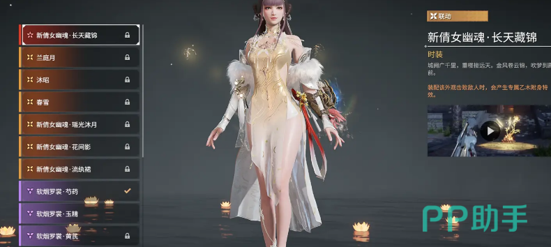 首先要提到的是“新倩女幽魂·长天藏锦”套装,这是一款专为喜欢奢华与辉煌的玩家设计的服装。想要这件时装,你需要开启辉光宝炉。这套服装不仅外观上极具视觉冲击力,还附带特殊的击败特效,让每一次胜利都如同烟花般绚烂。在战斗中,很难不被这样光芒四射的对手吸引。