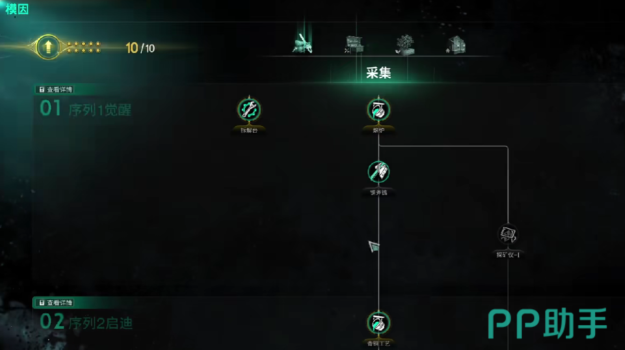 最后玩家再将采集和建筑的加点集中升级,尤其是采集的等级,采集的等级要根据玩家的大世界游戏等级进行提升,在此期间,玩家还需要不断的通过工艺制作,来获取更为高级的采集装备,这样才能够更加高效率的获取和制作物品,如若玩家想要快速解锁模因,则必须要率先完成赛季任务。
