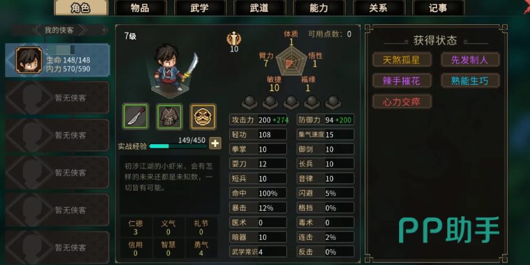 大侠立志传是一款由半瓶神仙醋开发的开放世界武侠RPG游戏,在游戏中各位玩家将扮演初出茅庐的江湖新人,体验多样的身份,通过不断努力在江湖中脱颖而出,为了帮助大家提升角色实力,今天小编带来大侠立志传练级攻略,帮助大家通过练级提高角色的等级、属性和战斗力,从而更好地应对游戏中的挑战和敌人。