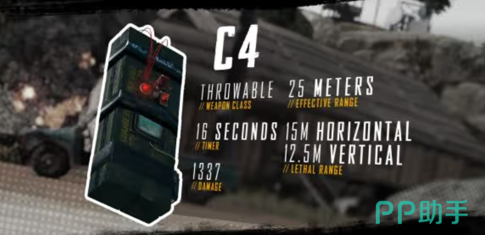 C4的爆炸时间长达16秒,这给了玩家充分的准备时间。你可以利用这段时间接近敌人,或者将C4放置在敌人必经之路上。C4的爆炸范围在半径25米内,位于爆炸位置的垂直半径5米、水平半径15米内的角色将会受到足以导致玩家被淘汰的伤害量。所以在放置C4时,要考虑到敌人的位置和移动方向,确保爆炸范围能够覆盖到目标。