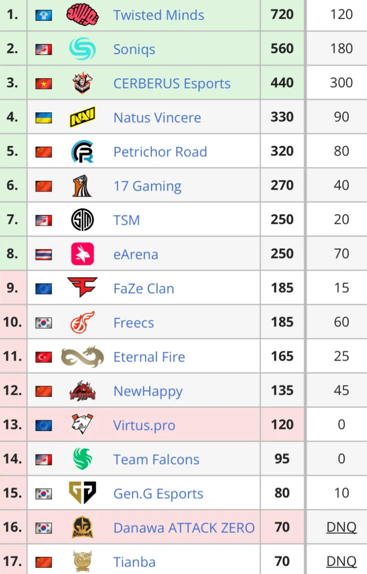 在PGS6的决赛中,Twisted Minds战队以强劲表现和实力,成功卫冕,达成了PGS赛事三连冠的辉煌成就。他们在比赛中展现出了极高的战术素养和团队协作能力,无论是进攻还是防守,都表现得游刃有余。尤其是在最后几场比赛中,他们凭借稳定的发挥和出色的决策,成功拉开了与其他队伍的差距,最终以171分的总成绩夺冠。这一成绩不仅刷新了PGS赛事的纪录,也再次证明了Twisted Minds在电竞领域的统治地位。