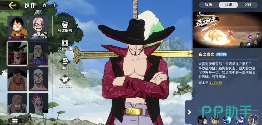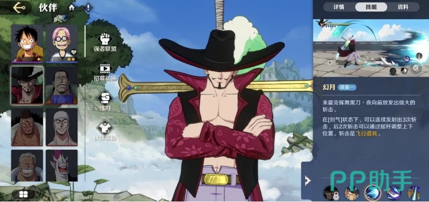 航海王壮志雄心鹰眼技能有哪些就为大家介绍到这里啦,他的技能和被动能力在游戏中是可以连成连招使用的,其实他无论是在单人游戏还是多人游戏中,都是一个非常有价值的角色,如果大家还没有尝试过使用鹰眼进行战斗,那么建议大家在游戏中一定要尝试一下,他也是目前强度排行榜上很多玩家推荐的角色哦。