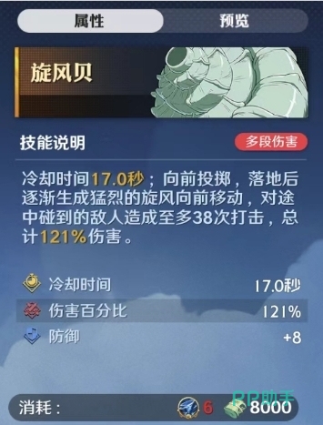 第一个比较推荐的是旋风贝,这枚蕴含自然之力的神奇贝壳,以其独特的冷却机制每17秒可再次使用和惊人的群体伤害能力脱颖而出,大家向敌阵投掷出这枚看似不起眼的小贝,它却能瞬间化作一股肆虐的旋风,席卷而过对路径上的所有敌人施加多达38次的连环打击,总计造成相当于攻击力121%的巨额伤害,无论是清理杂兵还是削弱敌方主力。