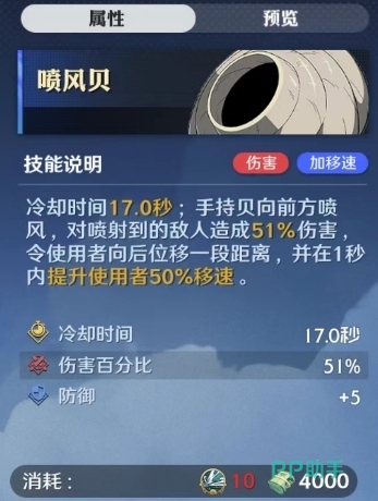 喷风贝作为一款兼容性极强的辅助装备,同样享有17秒的冷却特权,它不仅能对直线路径上的敌人造成51%攻击力的伤害,还赋予了使用者迅速后撤的能力,同时在接下来一秒内大幅提升50%的移动速度,这种进可攻退可守的灵活性,让持有者能够在战场上自由动作,无论是追击残敌还是躲避致命一击,都能展现出很强的机动性。