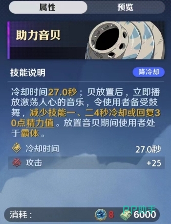 助力音贝,尽管拥有27秒的较长冷却时间,但其带来的增益效果绝对物超所值,一旦激活不仅能够鼓舞士气,更重要的是,它能减少角色一、二技能的冷却时间达4秒之多,或是瞬间恢复30点精力,为连续作战提供了保障,而且助力音贝启动期间,使用者将进入短暂的霸体状态,这一特性使得擅长连续控制或需要稳定输出环境的角色能够更加自如地发挥实力,无论是正面交锋还是战术撤退这个空岛贝都能带来加成效果。