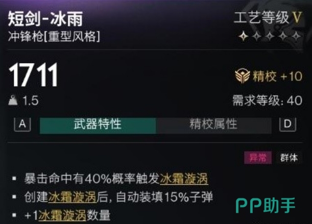 首先大家用之前需要了解冰雨的核心机制,这把武器在暴击命中时会触发冰霜漩涡,而冰霜漩涡不仅能造成额外的伤害,还能填充15%的弹药,因此,提高暴击率对于使用冰雨来说至关重要,而为了提升暴击率大家就可以从装备入手,一个推荐的搭配是重装手套,它不仅提供暴击强化效果,还能增加15%的暴击率,此外,词条效果也非常重要,这个手套可以带来元素为霜寒、电离、爆炸伤害+4.8%、对强化种伤害+2.4%、对强化种伤害+2.4%以及最大生命值+1.2%的效果。