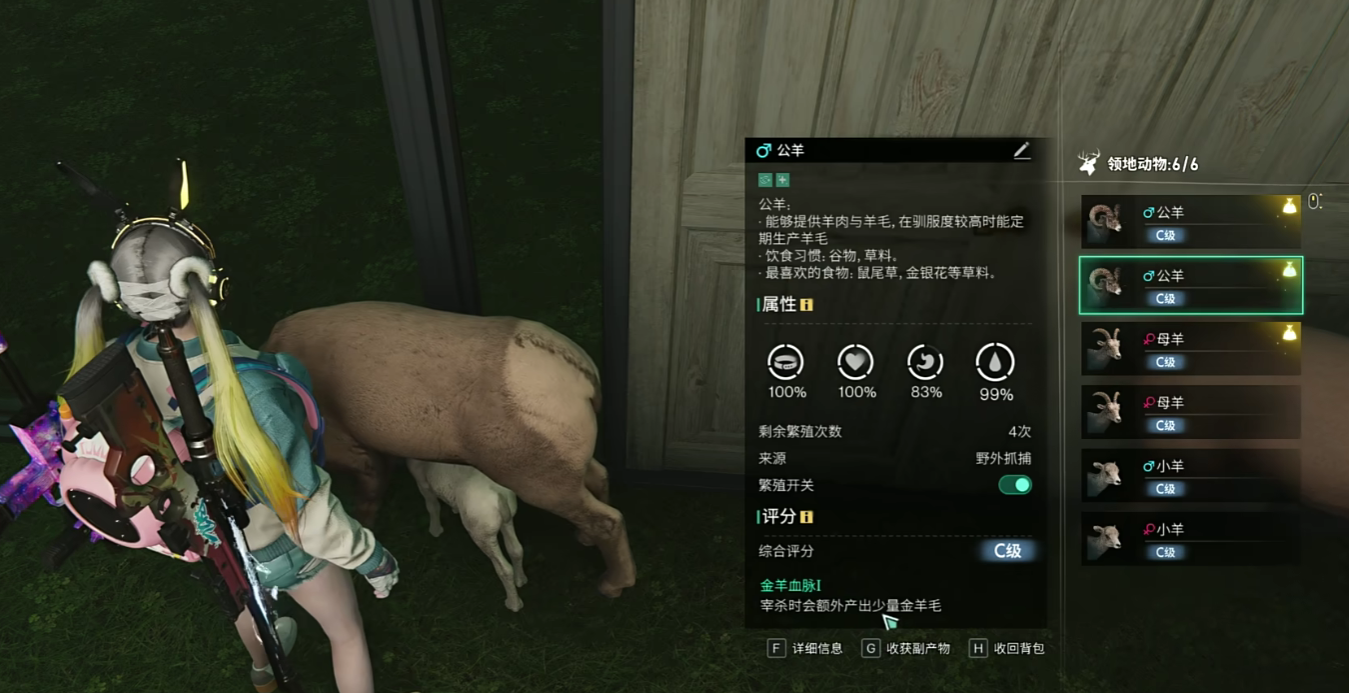 在完成了上述条件之后,玩家即可进行捕猎,由于游戏当中绵羊只会刷新在春天时期,所以建议玩家在冬天时就准备好捕猎道具,完成捕猎之后,玩家可以将绵羊饲养在自己的基建当中,值得注意的是,玩家一定要保证自己的农场之中至少有一公一母两只绵羊,随后,玩家需要观察好他们的生理状况,尤其是心情数值和饥饿数值。