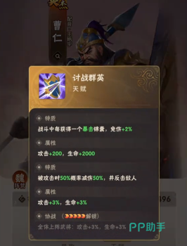 虎卫:如果将武将提升到十星,可以把曹仁更换成典韦或者是张飞。典韦偏向于肉盾,有护盾有天赋,而且免伤效果比较高。张飞偏向于输出,但是肉盾效果相对比较差一些,要想伤害比较高,可以选择张飞。
