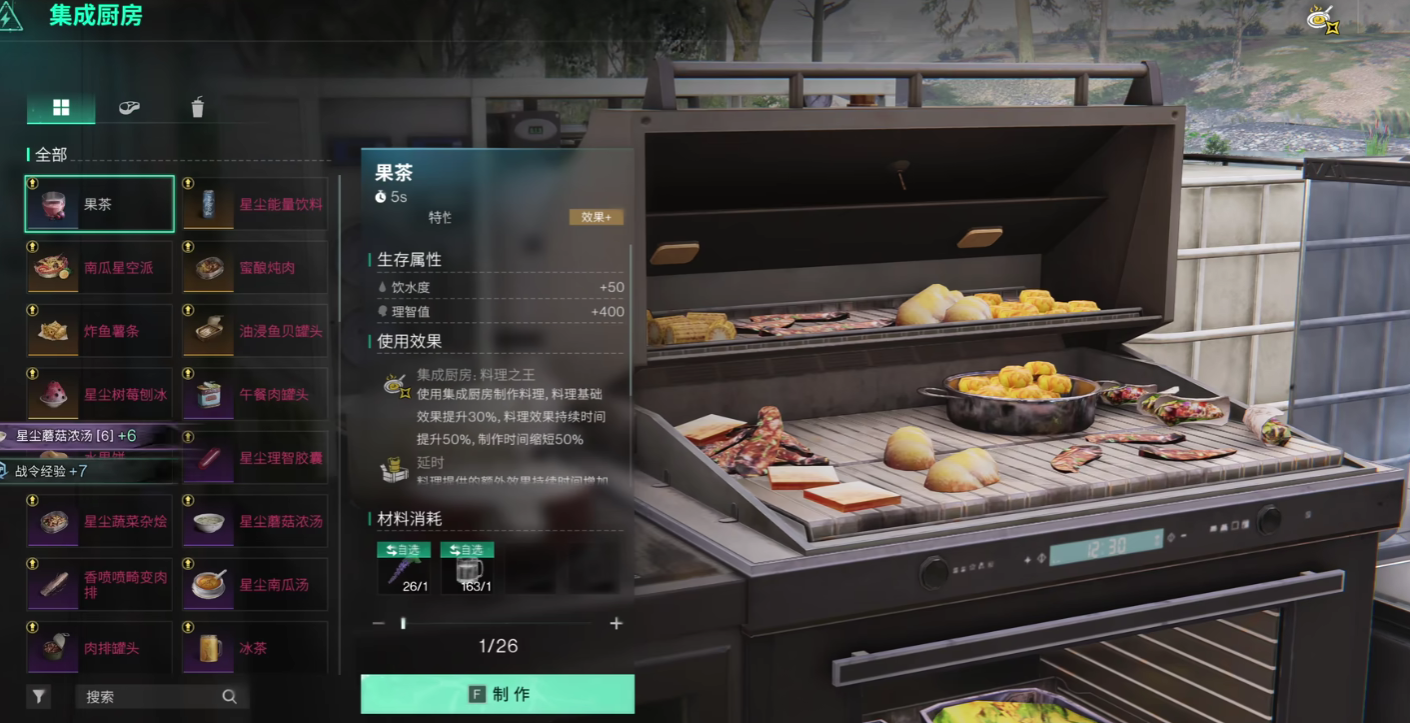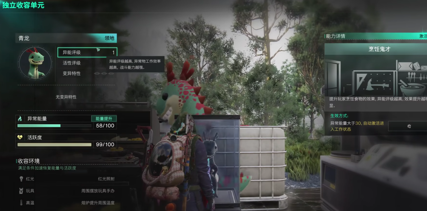 针对于资源并不充沛的玩家而言,青龙的加成buff非常重要,尤其是在游戏后期,玩家使用珍稀材料制作的部分回复以及特殊药品,使用青龙掌勺之后,可以大幅度地增加药品耐久时间和使用效率。