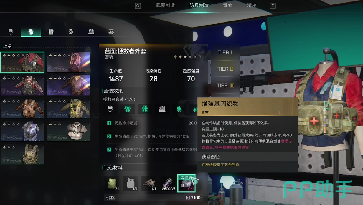 基因织物在游戏当中是一种基础材料,它可以用于制作拯救者兜帽,也是高级纤维的最低级替换物,在游戏内动画如果玩家想要获得基因织物,总共有三种方式。